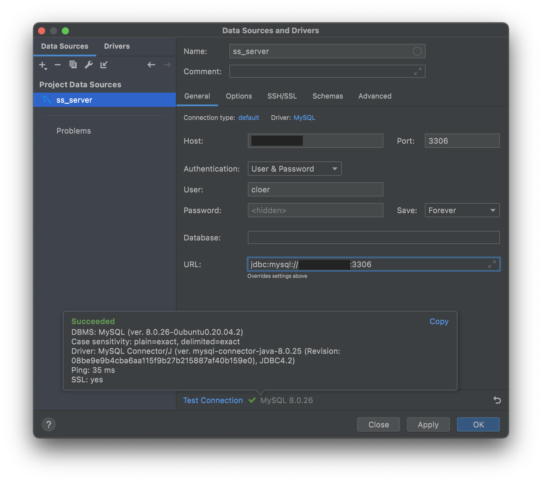 DataGrip다운로드 후 생성한 DB를 연결해준다.