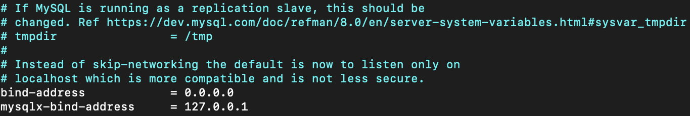 bind-address 를 0.0.0.0으로 설정해 외부접속을 허가해 준다.