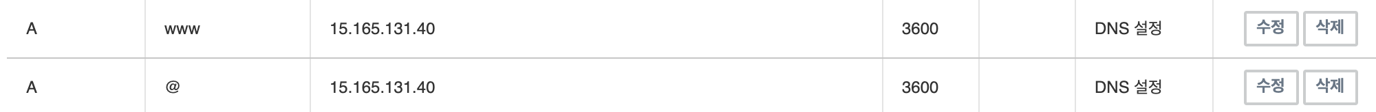 가비아를 이용해 도메인을 구매했다. 도메인 구매 후 레코드를 추가해 second-level 도메인을 설정해준다.
